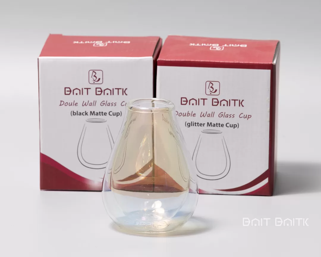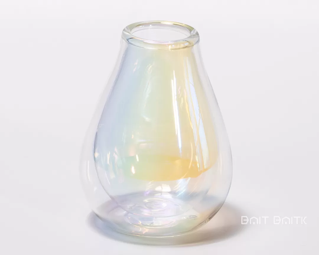 The pear-shaped double wall design helps maintain the temperature of your drink, while the inner glass reflects gentle rainbow shades that change with the light.