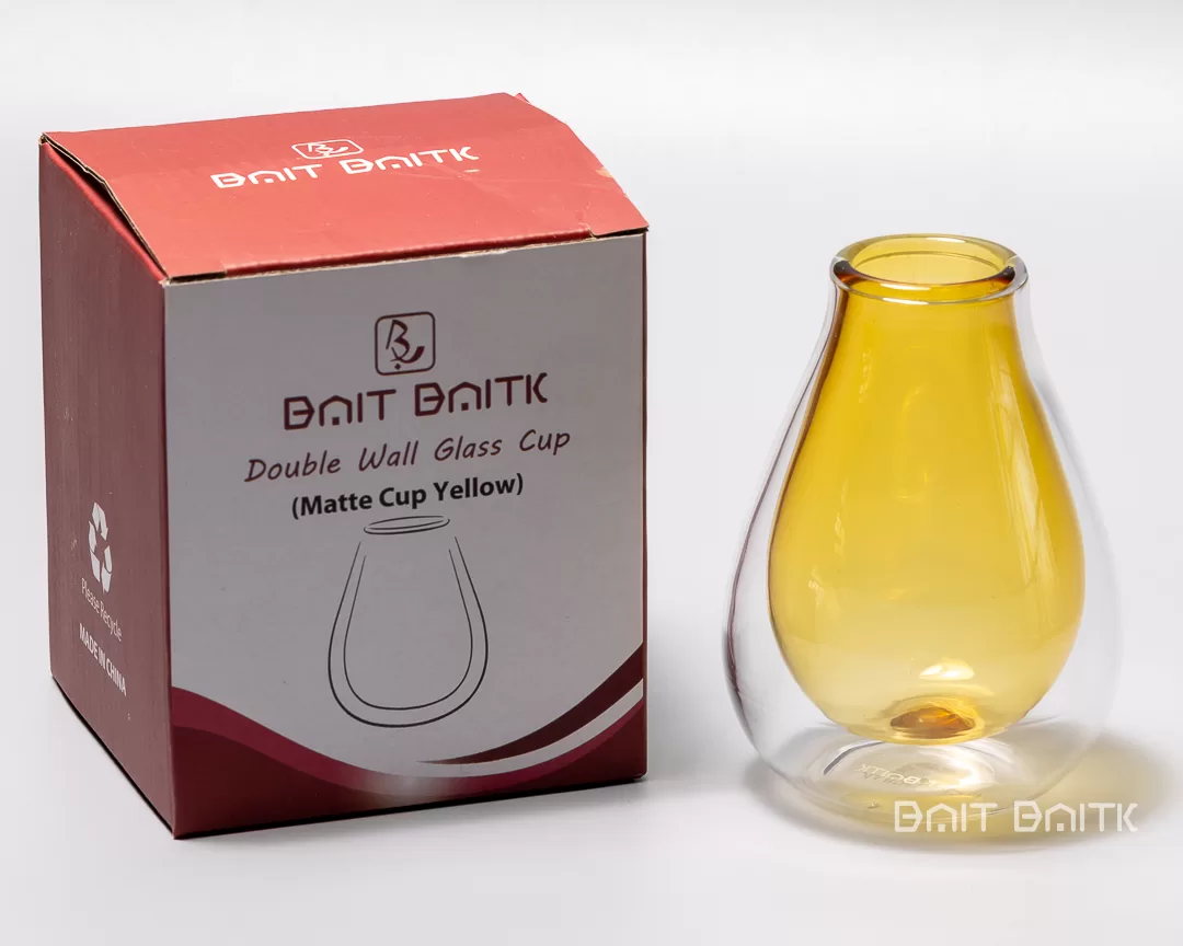Bring a warm touch of color to your daily ritual with the Bait Baitk Double Wall Glass Cup – Matte Yellow.