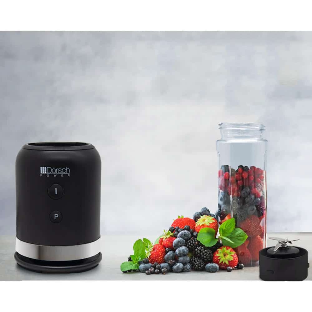 First of all, the Dorsch Mini Juicer 350W is a compact personal blender for daily smoothies and shakes. It easily fits on most kitchen counters. In addition, the powerful motor and special blade help blend oats, nuts, seeds and frozen fruit into a smooth drink.