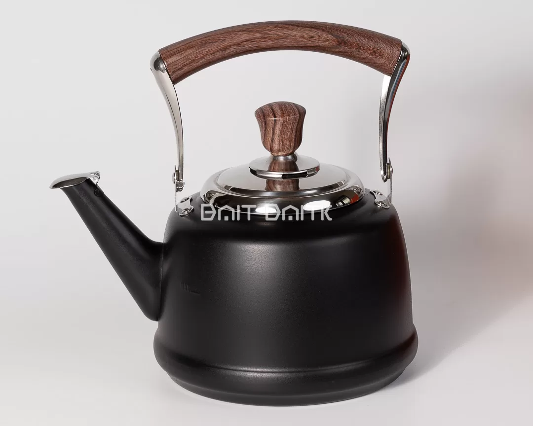 3. Whistling Kettle 2.5L – Matte Black with Wooden Handle (BD606)